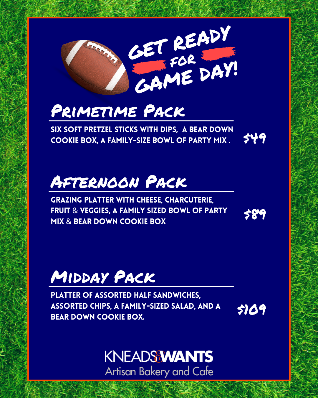 To celebrate, we’ve created special Game Day Party Packs, perfect for game day gatherings, tailgates, or any celebration. Each pack is built to feed a crowd and includes a mix of our fan-favorite baked goods and savory bites — all made by hand, right here in Downtown Skokie.